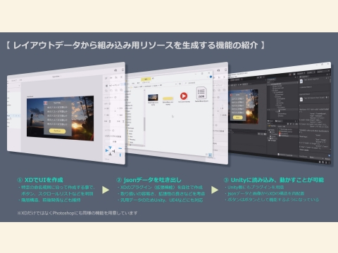 本日は、社内で作成したプラグイン(機能拡張)の情報共有会をオンラインで行いました。 画像加工アプリやレイアウトアプリから、必要なデータを実装できる形式でエクスポートし、ゲームエンジンで読み込むことがで...