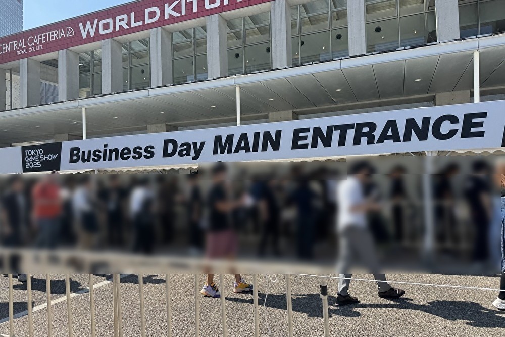 今年は昨年と違い、TGSのオブジェがおかれていたり、手荷物検査場所が外に作られていたりと一味違う印象を受けながら待機列に向かうと…